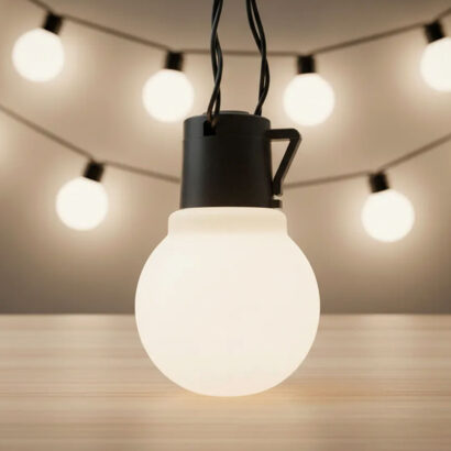 Creá una atmósfera mágica y acogedora en tus espacios exteriores con esta guirnalda solar LED tipo bombilla. Ideal para jardines, patios, eventos, celebraciones y decoración navideña, ofrece iluminación decorativa sin cables ni consumo eléctrico.